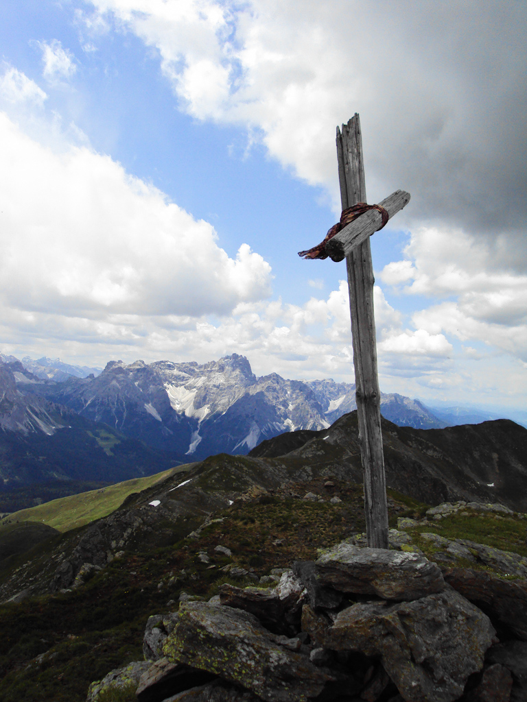 Ein Felsbrocken im Vordergrund des Wolayerkopfes ohne Namen (zumindest