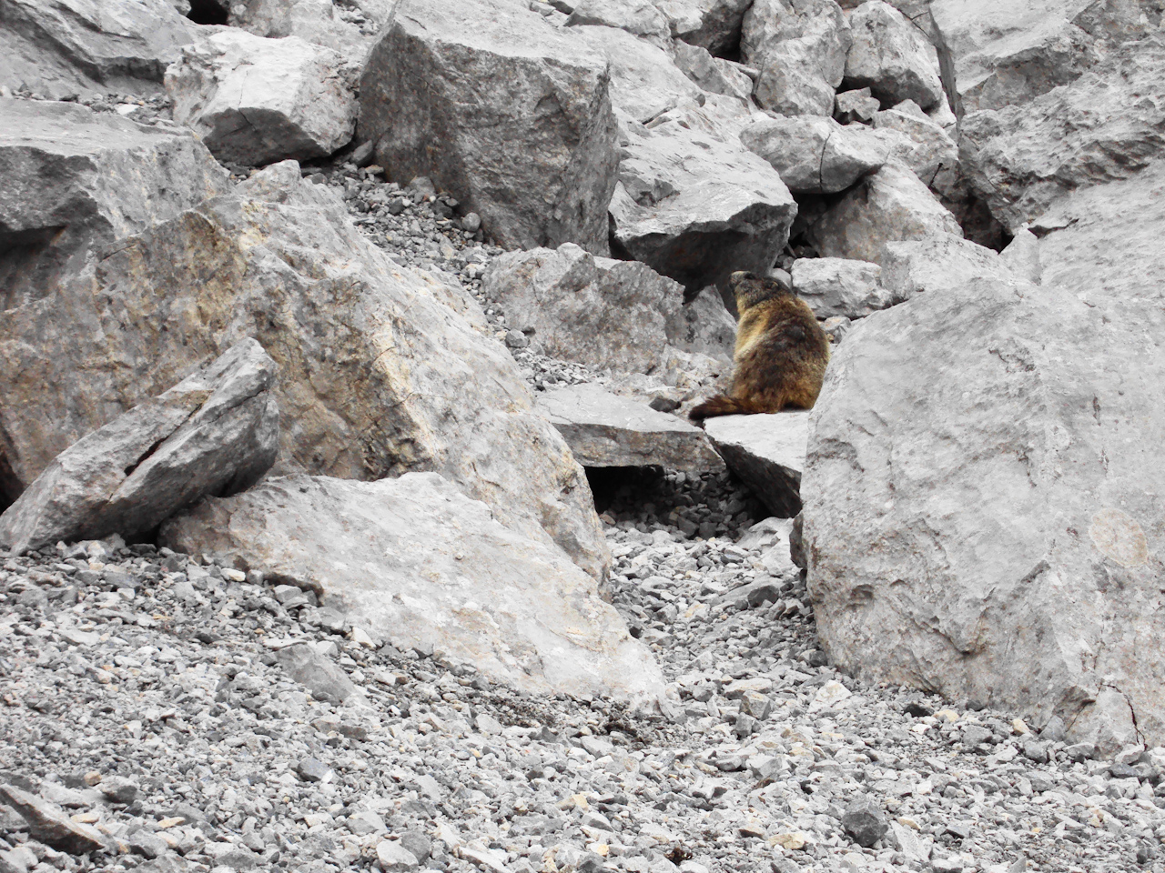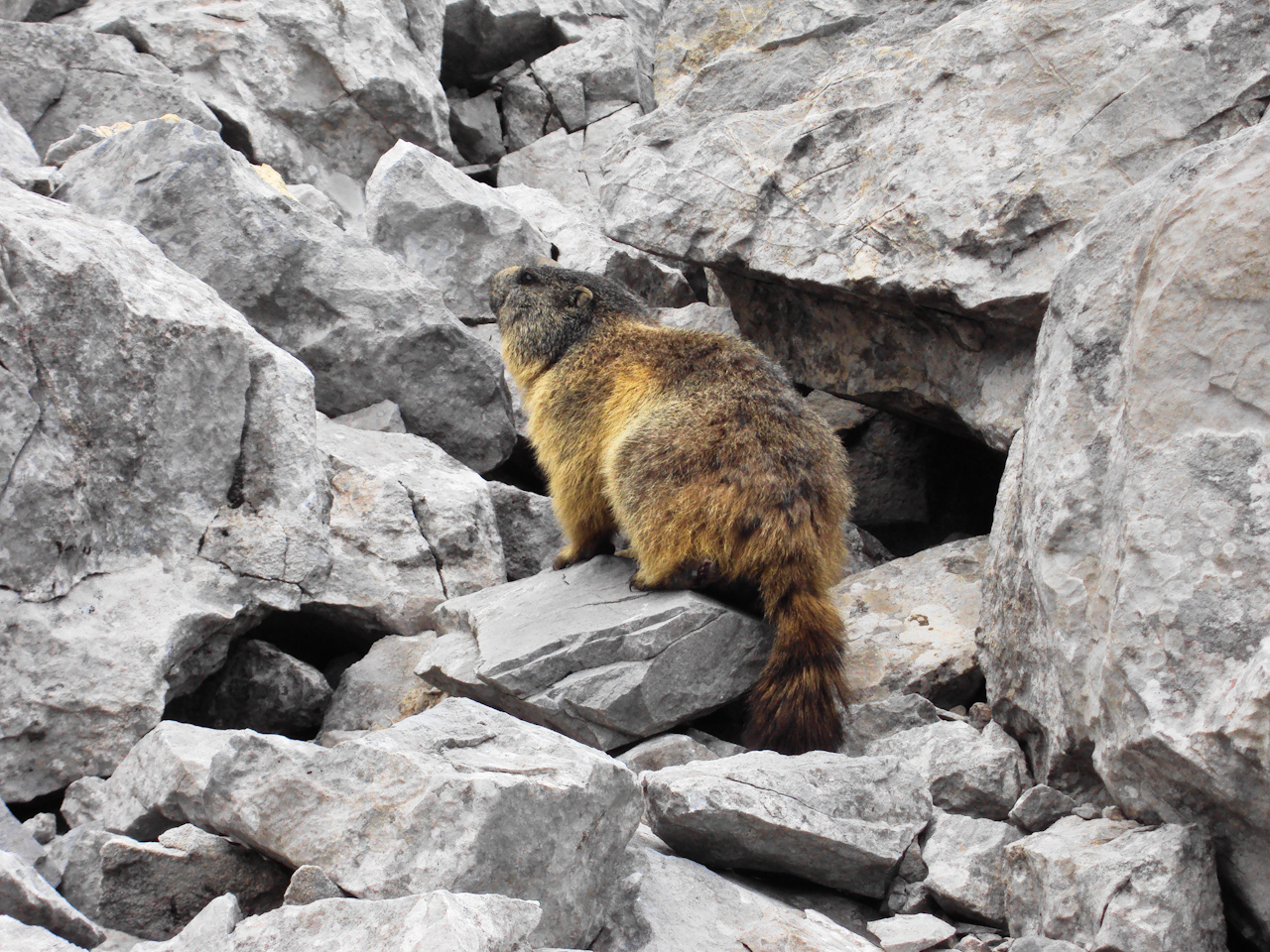 Am Weg um den See dann ein offensichtlich an Menschen gewöhntes Murmeltier: